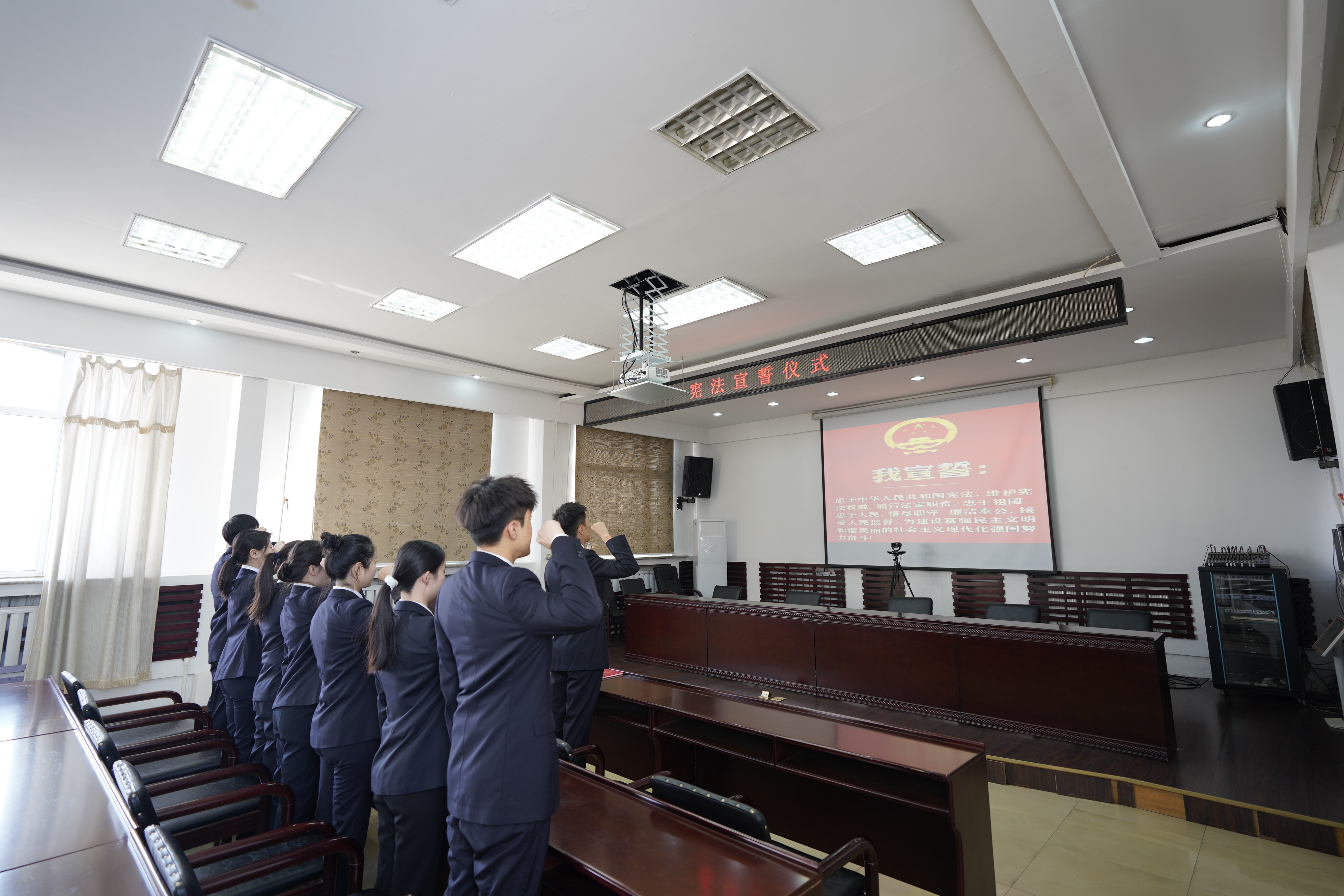 铮铮誓词铸忠诚,初心如磐护宪法。在宪法宣誓仪式上,近两年新入职干警身着制服、整齐肃立,面向国徽庄严列队。在领誓人的带领下,7新入职人员右手高举握拳,逐字逐句许下“忠于中华人民共和国宪法,维护宪法权威,履行法定职责……”的铮铮誓言。誓词铿锵有力,既是对法治信仰的郑重宣告,更是对检察使命的庄严承诺,进一步坚定了新入职干警做宪法忠实崇尚者、模范遵守者的信念。