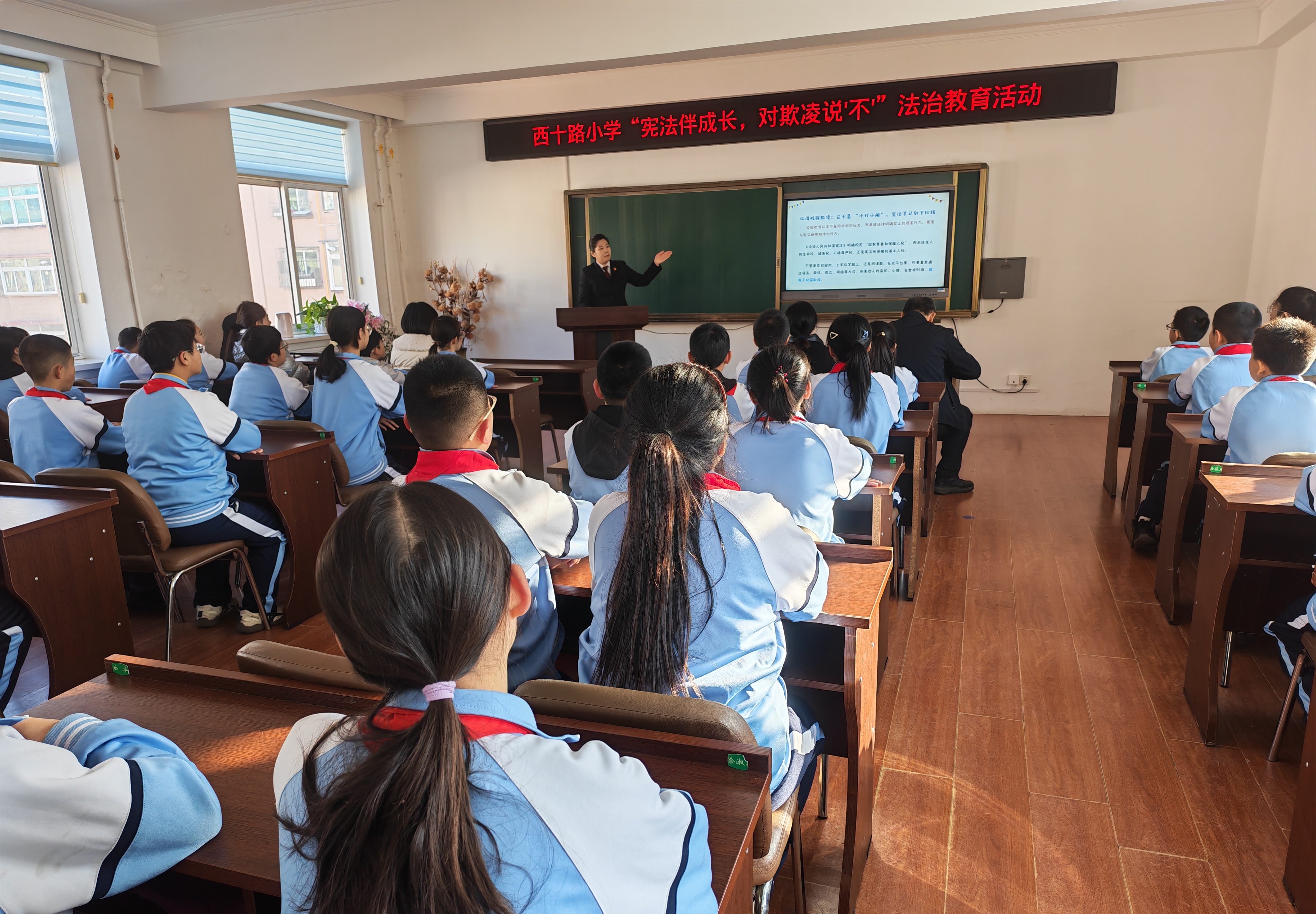 法治护航助成长,“宪”入校园润童心。第三检察部主任、员额检察官姚迪以法治副校长身份走进西十路小学,开展“宪法伴成长 对欺凌说不”主题法治教育活动。姚迪检察官针对小学生特点,以生动案例与通俗语言,讲解宪法权利,剖析校园欺凌的危害以及法律后果。学生们在互动中不仅加深对宪法法治的尊崇与理解,还掌握了应对欺凌的实用技巧。此次活动旨在引导小学生们要从自身做起,争做尊法守法的“宪法小卫士”,自觉抵制校园欺凌,共同守护平安校园。