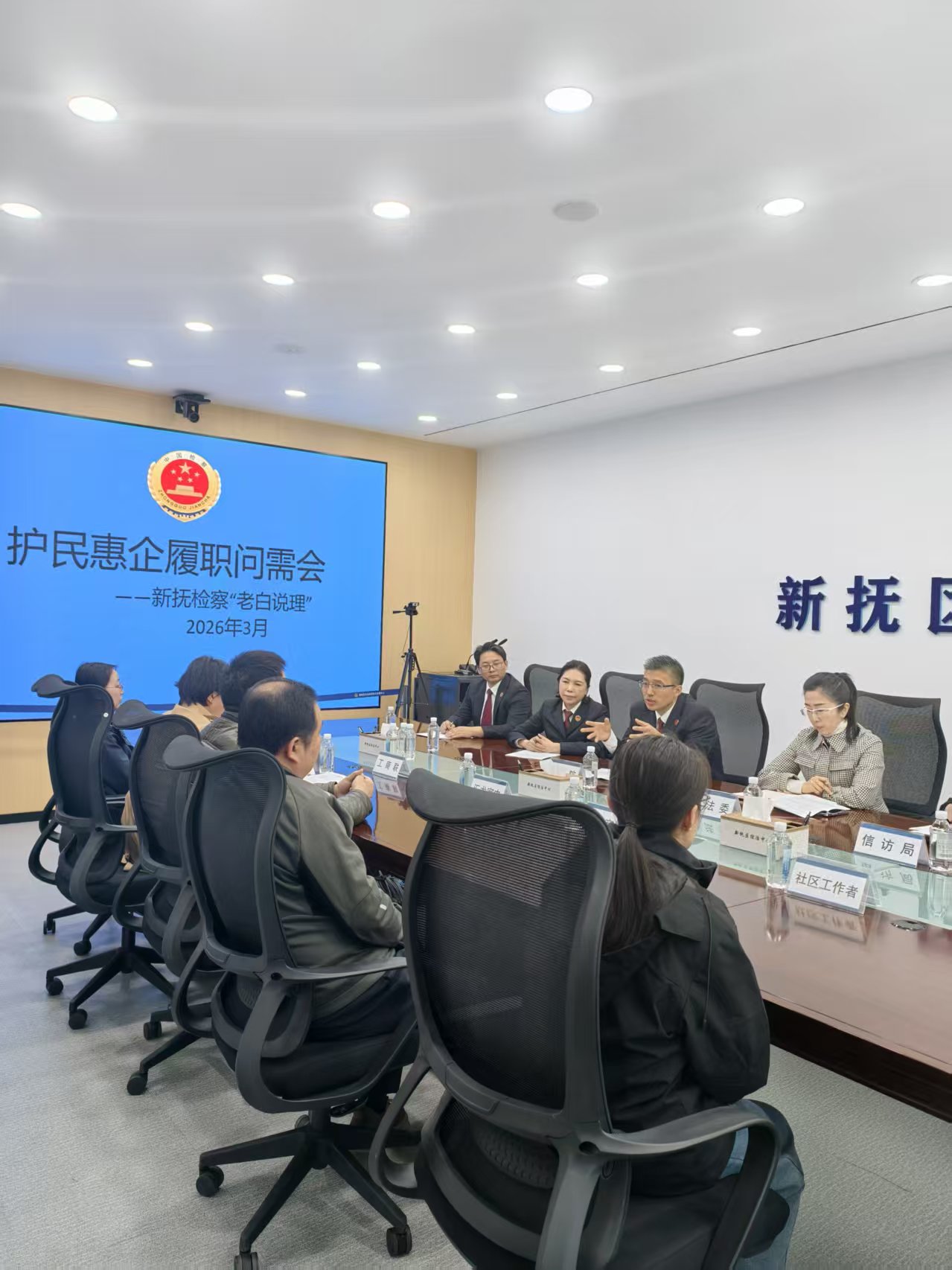 2026327日,新抚区人民检察“老白说理”团队护民惠企、履职问需座谈会在区委政法委领导支持下于新抚区综治中心召开。会议邀请社区群众代表、企业代表和民政、信访、妇联、工商联等相关协作单位参加以弘扬雷锋精神、保障发展大局为主旨,面对面问需于民、问计于企,商讨如何以高质量检察履职服务保障好法治化营商环境建设和检护民生工作